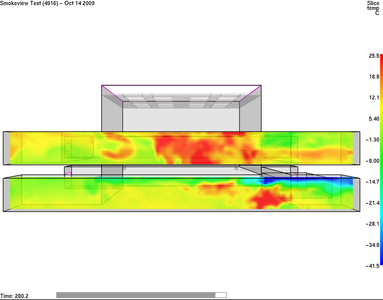 Über die Ausgabe Smokeviews kann damit die Auswirkung von Parameterstudien grafisch erfasst werden.